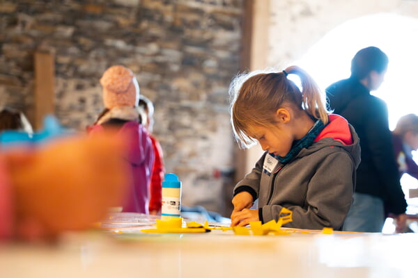 Ganz praktisch geschieht das in Workshops wie Bogenschießen, Outdoor-Techniken, Kreatives Werken und Holzwerkstatt, wo die Kinder Neues lernen und ihr Können erweitern.