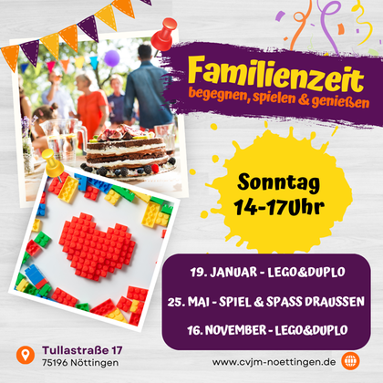 Am Sonntag, den 16. November 2025, laden wir von 14:00 bis 17:00 Uhr herzlich zur Familienzeit im CVJM Nöttingen ein.